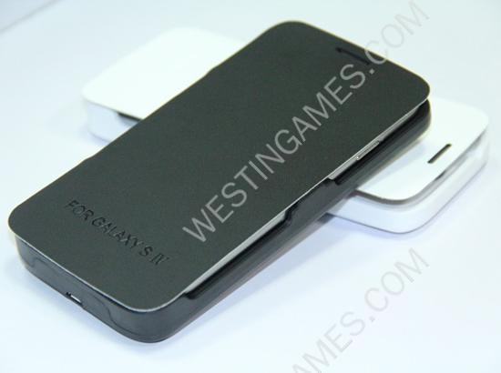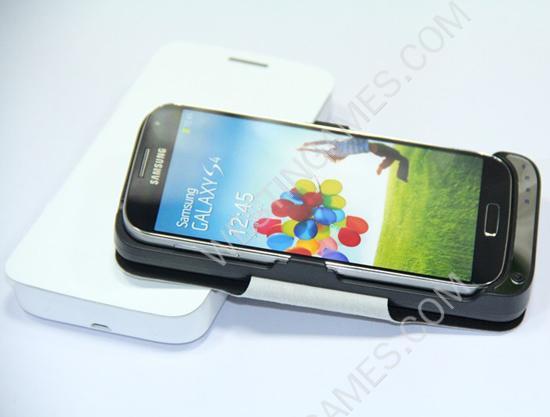 1* 4500mAh External Backup Battery Power Pack Case w/ Leather for Galaxy S4 I9500 – Black/White