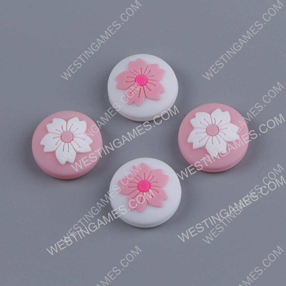 New 4in1 Thumb Grips Analog Caps Silicone Rubber For NS Switch – cherry blossom