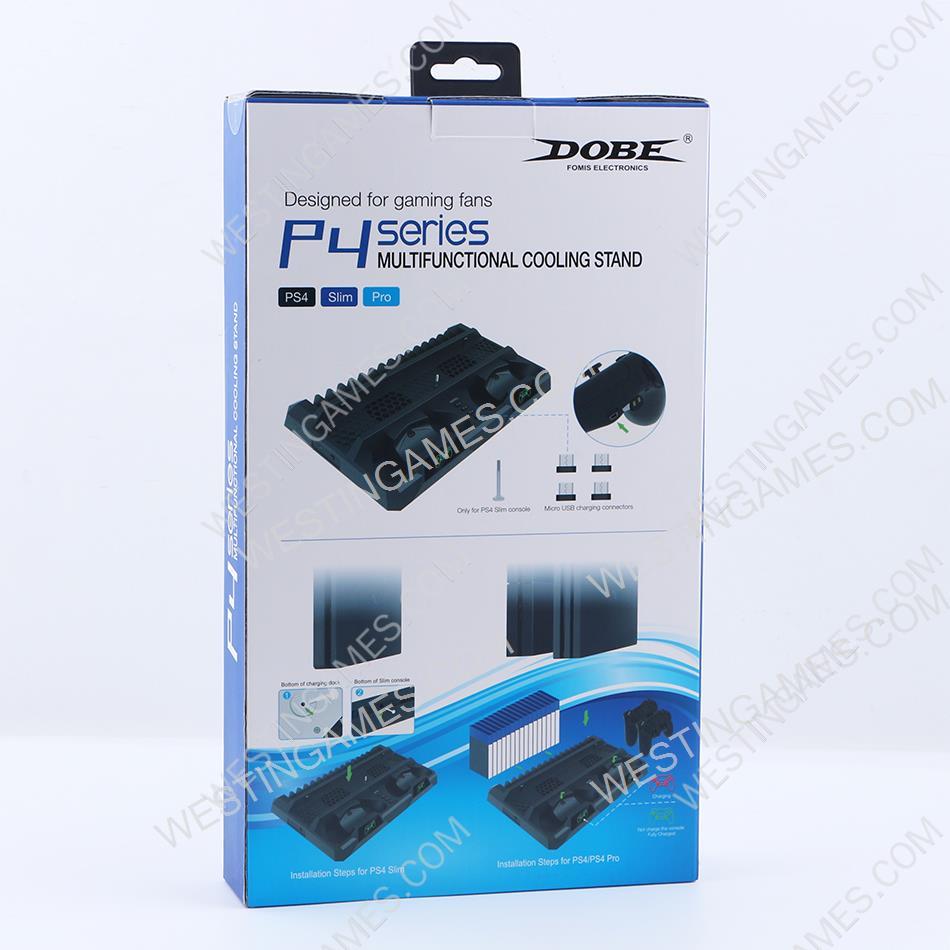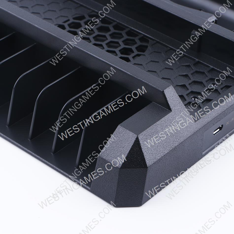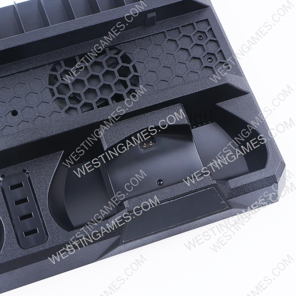 This product is designed to decrease the temperature for PS4, PS4 Slim and PS4 Pro console, and to charge the PS4 controller, and also can work as a console stand.This product can decrease the temperature for the PS4, PS4 Slim and PS4 Pro console effectively, improve its performance and decrease the power loss. Power off when its switch is bounced,and power on when it is pressed down,it can accelerate the air inside the console to avoid high temperature, decrease the power loss and prolong the working life of the console. There are two docks to charge the PS4 original controller on its right side,the controller will charge when plugging it into the docks. It is the same charging way with the original one to prolong the working life for the controller. It can store 12pcs game discs on its left side. It can be compatible with the PS4, PS4 Slim and PS4 Pro console.
