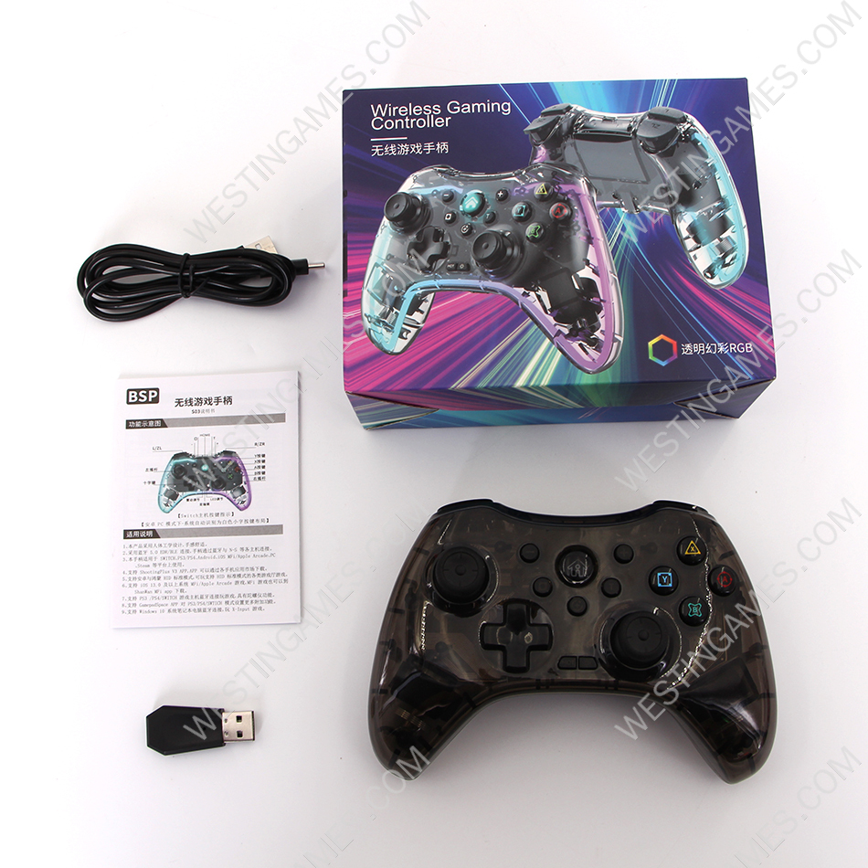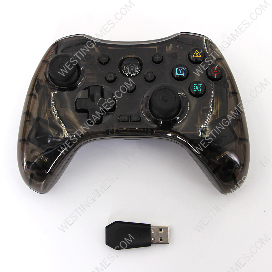 Wireless Game Controller RGB Glare Game Hand Joystick Controller with USB Receiver for Switch PS3/PC/TV BOX Transparent White